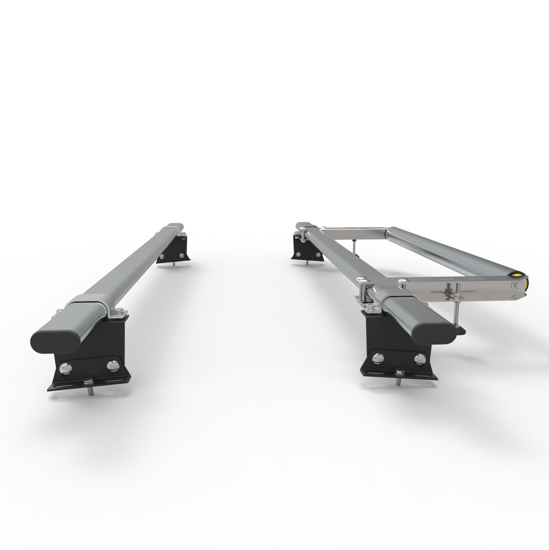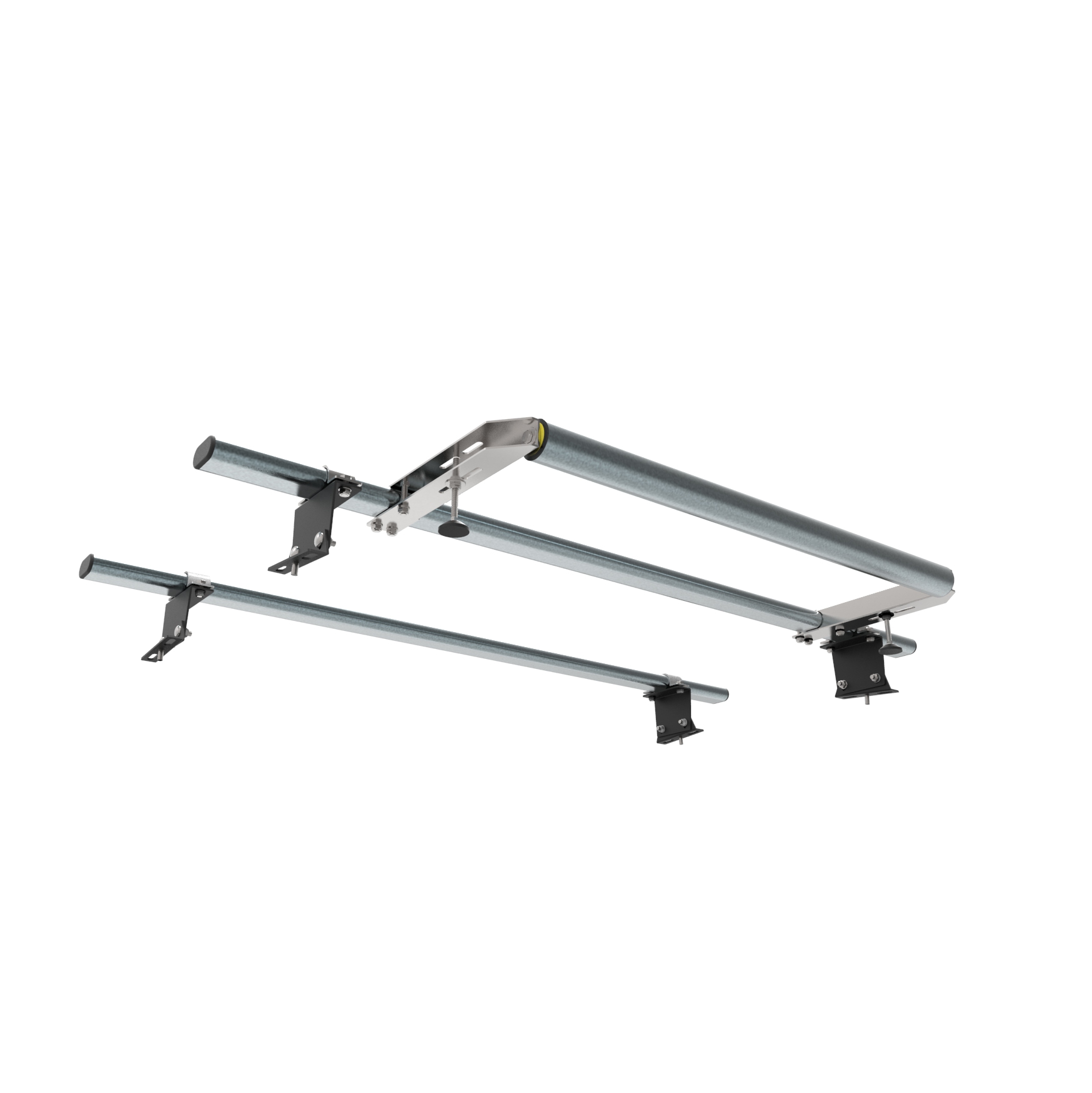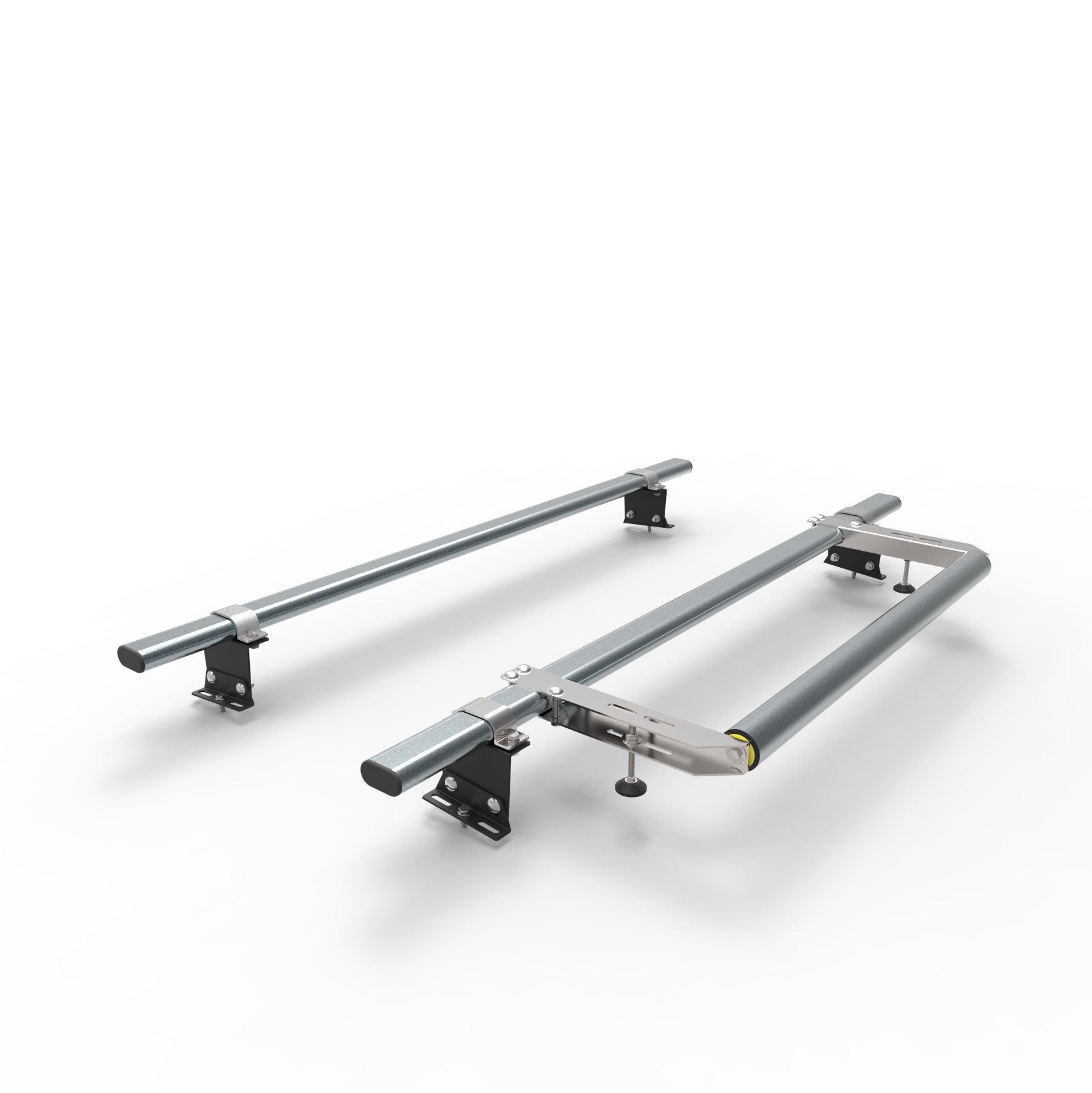 • The system is comprised of 2 bars, load stops, rear roller, and all the required fixings and brackets.